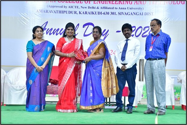 The following Staff Members received "Best Meritorious award in 2025" from the management of ”SRI RAAJA RAAJAN COLLEGE OF ENGINEERING AND TECHNOLOGY, KARAIKUDI", for producing good academic results.